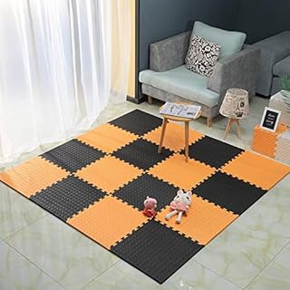 ジョイントマット パズルマット 大判 ズレない 50×50×1.6cm 10枚 衝撃吸収 フロアマット おくだけ吸着 ノンホルムアルデヒド はっ水加工 環境に優しい 滑り止め 厚め 断熱・抗菌・防ダニ加工 赤ちゃん 床暖房対応 ブラック+オレンジ