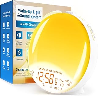 Windflyer 子供用 目覚まし時計 幼児用 目覚まし時計 子供の睡眠トレーニング時計 顔の表情付き ナイトライト 昼寝タイマー 睡眠サウンドマシン 目覚ましライト 目覚まし時計 子供 男の子 女の子 寝室用