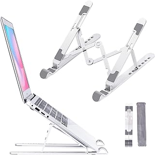 ノートパソコンスタンド ノートパソコンホルダー ライザー コンピューターマウント 0.6ポンド 軽量 丈夫 アルミニウム 調節可能 人間工学的 折りたたみ式 ポータブル タブレットホルダー 10インチから15.6インチのノートブックコンピューター用 (シルバー)