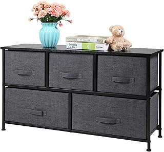 YITAHOME ドレッサー 引き出し5つ付き ファブリックストレージタワー オーガナイザー 寝室 リビングルーム クローゼット 保育園用 丈夫なスチールフレーム 木製トップ (5つの高い幅広引き出し クールグレー)