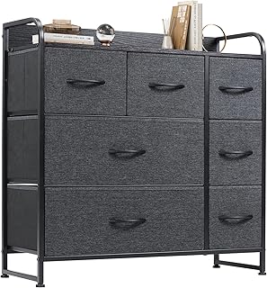 WLIVE ドレッサー 7つの引き出し付き チェストの引き出し 3段オーガナイザーユニット スチールフレーム 木製トップ 簡単プルファブリックビン 寝室 リビングルーム 廊下 保育園 玄関用 ダークグレー