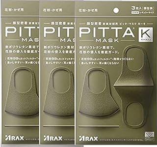 アラクス ピッタマスク カーキ(PITTA-MASK-KHK-3) 3枚×3袋入り ポリウレタン マスク