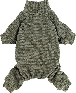 Fitwarm 犬服 パジャマ ニット タートルネック ボーダー柄 部屋着 着脱やすい 暖い 犬猫用 冬服 ペット 用 わんこ 用 超小型犬小型犬 グリーン M
