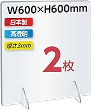 【 ジャパンスマイル 】パーテーション アクリル板 アクリルパーテーション デスク用パーテーション アクリルパネル 飛沫防止対策アクリル板 アクリル足付き 衝立 仕切り板 居酒屋 飲食店 食事 学校 病院 角丸加工 板厚3mm 日本製 jap-r6060 (W600mm×H600mm, 1枚)