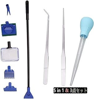3点 セット アクアリウム 水草 トリミング 水槽セット5 in 1 水槽クリーナー 多機能 水槽掃除ツール 長さ調整可能 水槽 クリーニングキット アクアリウム 苔 雑草 ゴミ コケ取り クリーナースポイトピンセット 実用 便利 (8点セット)