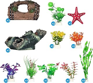 MARTINE MALL 14パック アクアリウム 水生魚タンクデコレーション 木製洞窟ツリートランクバレル ヒトデ 樹脂 人工水槽植物 複数色 プラスチック アクアリウム 水槽アクセサリー
